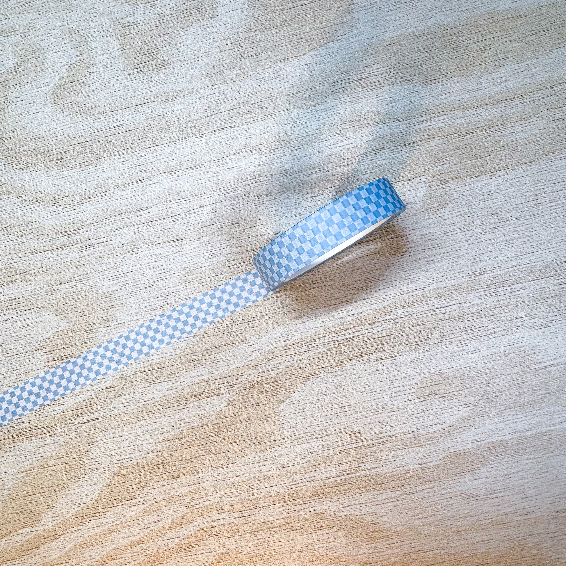 Enjoy this 10mm light blue checkerboard washi tape.